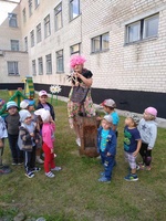 Выхаванцы дашкольнай адукацыі весела і цікава правялі час гульнявых заняткаў на свежым паветры разам з казачнымі героямі. У госці да рабят завітала сапраўдная Баба Яга, якая расказала аб лясных жыхарах, раслінах беларускіх лясоў і палёў, а таксама разам з дзецьмі гуляла ў вясёлыя гульні на экалагічнай пляцоўцы.